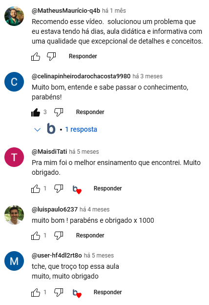 Tenho aulas gravadas tanto para clientes como gratuitas no Youtube, onde conecto as duas coisas. O amor por ensinar e minhas experiências em tecnologia.